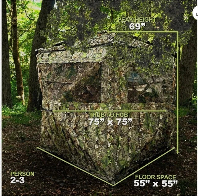 *3 Adjustable See-Through Windows (44 inches x 18 inches): Maintain a full field of vision while staying hidden from game, you can see out but they can't see in.
